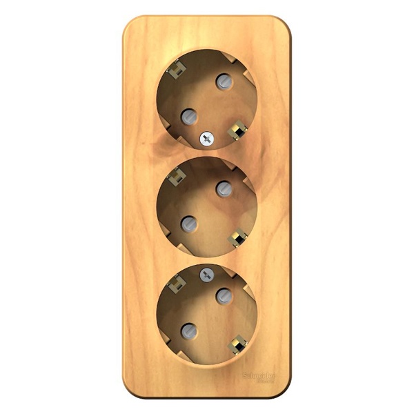 Розетка SE BLANCA (ясень, открытой установки) трехместная, без шторок, с заземлением и изолирующей пластиной предназначена для сетей до 250В, на ток до 16А. Трехместная розетка позволяет подключить три устройства в одном месте. Заземление обеспечивает безопасность при косвенном прикосновении. Изделия цвета Ясень обладают уникальным рисунком, напоминающим древесный сруб. Она изготовлена из ABS-пластика, проста в установке и удобна в применении.