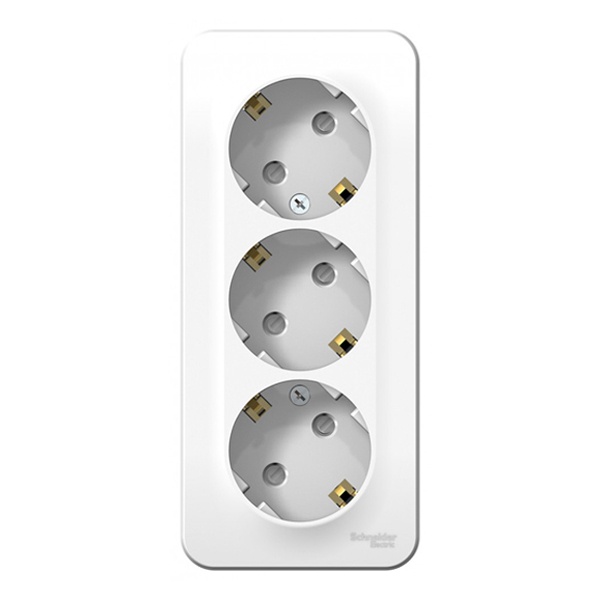 Электрическая внешняя белая розетка Систем тройная силовая 16А электросети 220В IP20 открытой установки на стену BLNRA011311