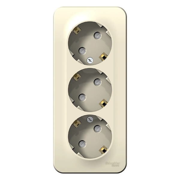 Электрическая внешняя кремовая розетка Систем тройная силовая 16А электросети 220В IP20 открытой установки на стену BLNRA011312