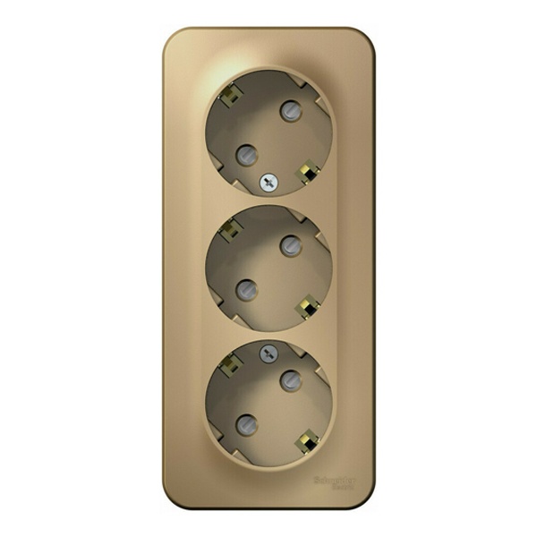 Электрическая внешняя титан розетка Систем тройная силовая 16А электросети 220В IP20 открытой установки на стену BLNRA011314