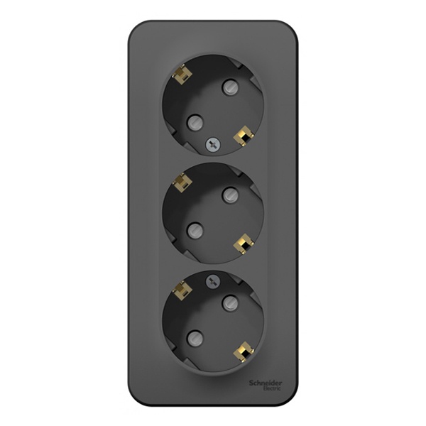 Электрическая внешняя антрацит розетка Систем тройная силовая 16А электросети 220В IP20 открытой установки на стену BLNRA011316