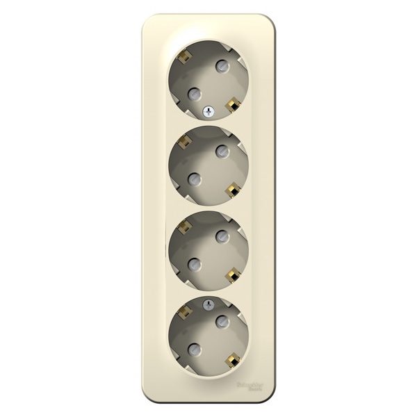 Розетка SE BLANCA (молочный, открытой установки) четырехместная, с заземлением, шторками и изолирующей пластиной предназначена для сетей до 250В, на ток до 16А. Четырехместная розетка позволяет подключить четыре устройства в одном месте. Шторки и заземление обеспечивают дополнительную безопасность при косвенном прикосновении.