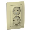 Двухместная розетка скрытого монтажа, с заземляющими контактами, с крышкой и защитными шторками, Бланка Систем Электрик, цвет слоновая кость BLNRS441127