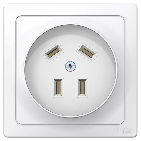 Розетка Schneider Electric BLANCA (белый, скрытой установки) силовая с заземлением для применения в сетях до 440В, на ток до 32А. Монтаж выполняется с помощью монтажных лапок и винта. Поверхность имеет глянцевое покрытие. Размеры розетки: 100*100*47 мм.