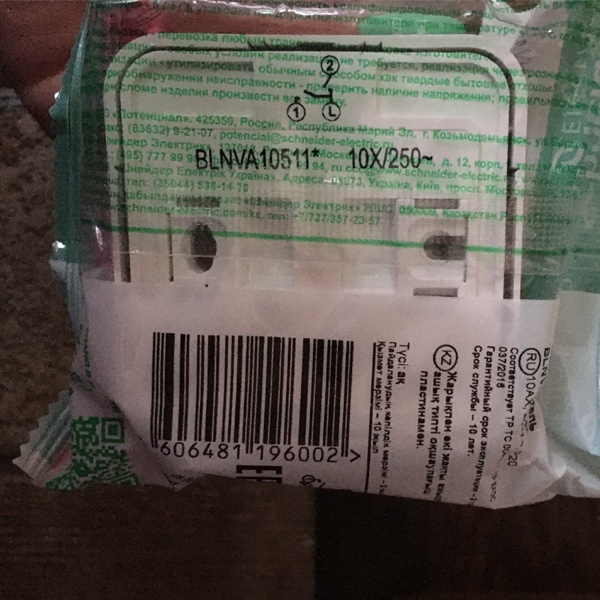 | Схема подключения | Выключатель 2х1-полюс. |