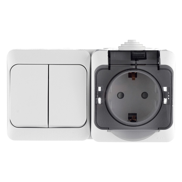 Блок Schneider Electric ЭТЮД (белый, открытой установки) предназначен для применения в сетях до 250В, состоит из розетки на 16А, со шторками, без заземления и двухклавишного выключателя на 10А. Две клавиши позволяют управлять двумя источниками света с одной точки. Он удобен в применении и отлично подходит для ванной комнаты (IP44). Сделано в России.