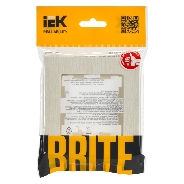 Рамка на 1 пост ИЭК BRITE пластик бежевый рифленый (РУ-1-Бр) BR-M12-51-K10