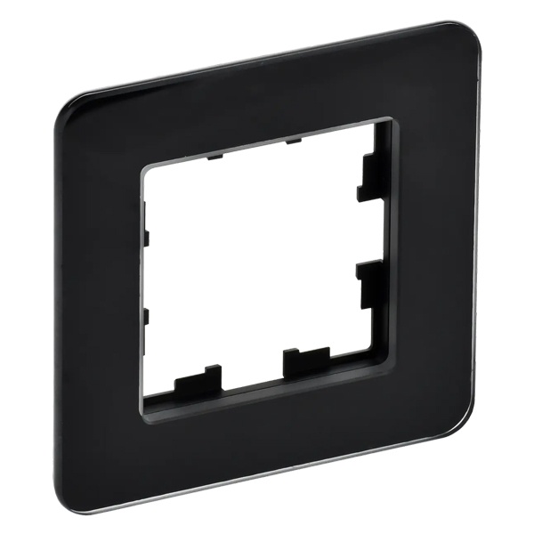 Однопостовое, декоративное обрамление из стекла, для электроустановочных механизмов скрытого монтажа IEK BRITE, черного цвета BR-M12-G-41-K02