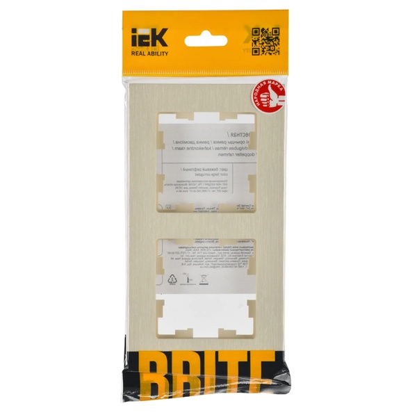 Двухпостовое, декоративное обрамление для электроустановочных механизмов скрытого монтажа IEK BRITE, бежевый цвет BR-M22-51-K10