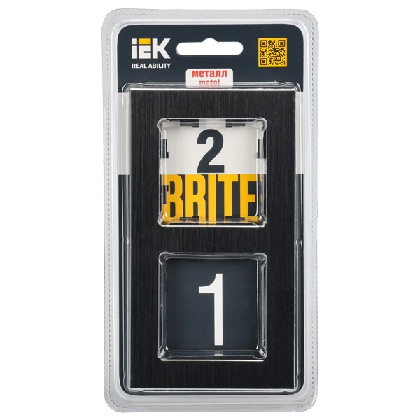 • Рамка на 2 поста ИЭК BRITE металл черный глянец (РУ-2-1-БрЧ)