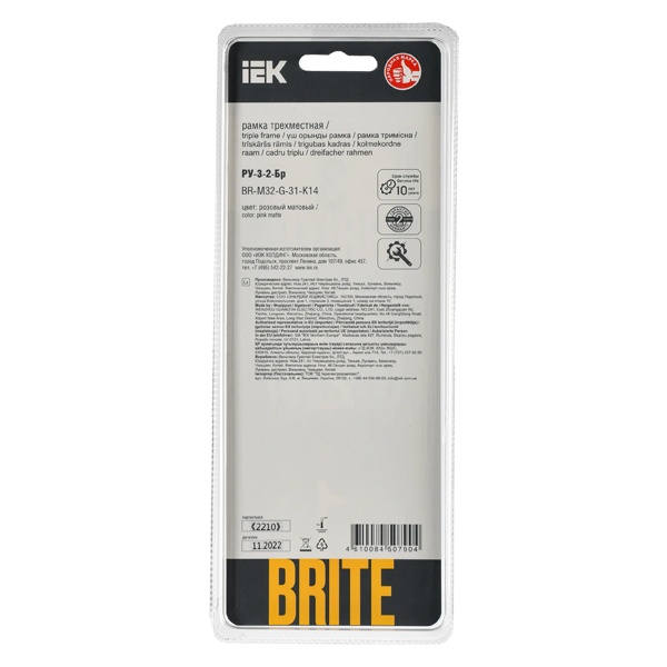 BR-M32-G-31-K14 Рамка на 3 поста ИЭК BRITE стекло розовый матовый (РУ-3-2-Бр)