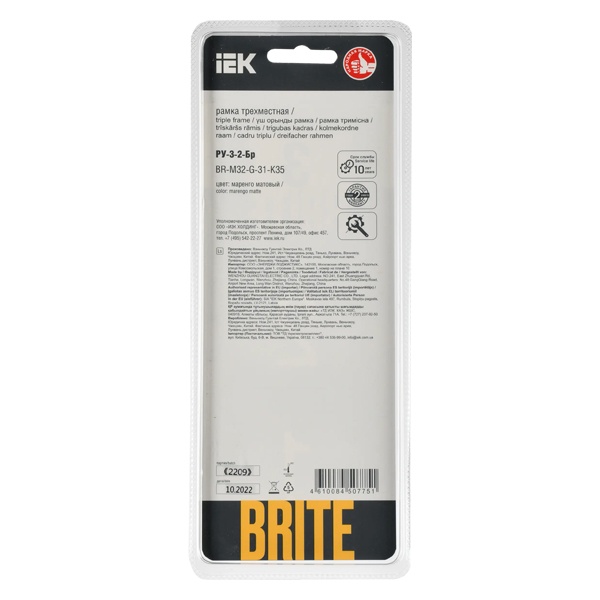 • Рамка на 3 поста ИЭК BRITE стекло маренго матовый (РУ-3-2-Бр)