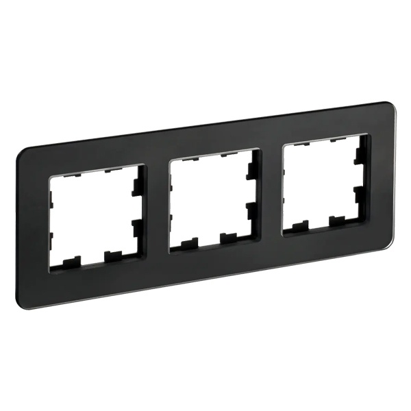 Трехпостовое, декоративное обрамление из стекла, для электроустановочных механизмов скрытого монтажа IEK BRITE, черного цвета BR-M32-G-41-K02