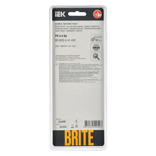 BR-M32-G-41-K02 Рамка на 3 поста ИЭК BRITE стекло черный (РУ-3-2-Бр)