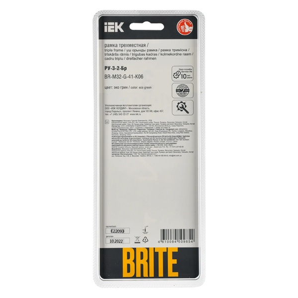 BR-M32-G-41-K06 Рамка на 3 поста ИЭК BRITE стекло эко грин RE (РУ-3-2-Бр)