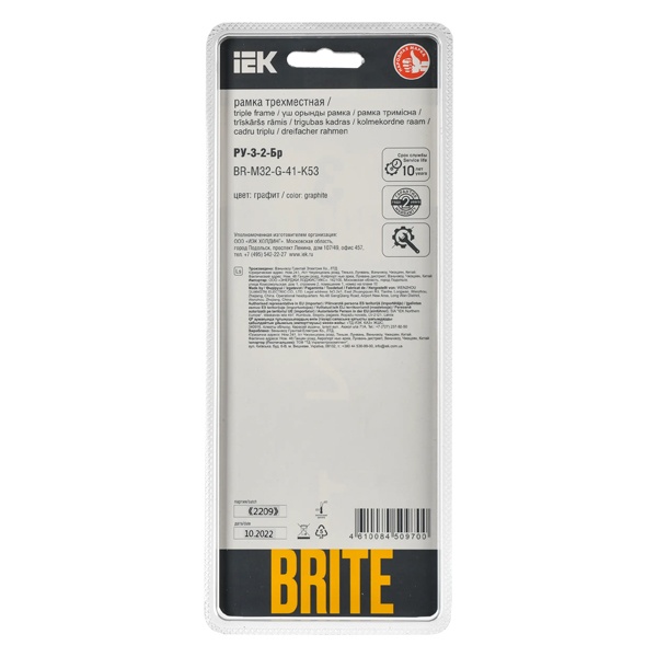 BR-M32-G-41-K53 Рамка на 3 поста ИЭК BRITE стекло графит RE (РУ-3-2-Бр)