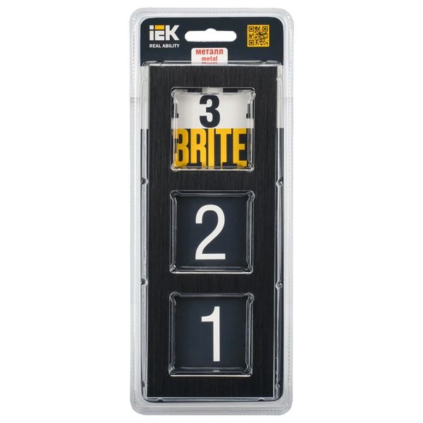 Рамка на 3 поста ИЭК BRITE металл черный глянец (РУ-3-1-БрЧ) BR-M32-M-K02