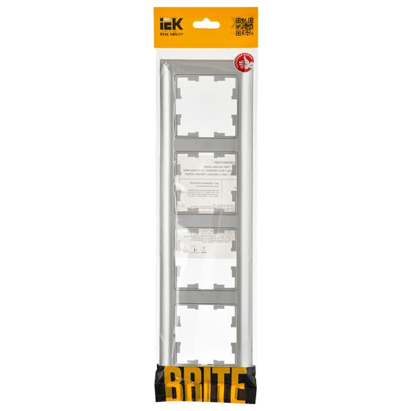 Четырехпостовое, декоративное обрамление для электроустановочных механизмов скрытого монтажа IEK BRITE, цвет алюминий BR-M42-12-K47