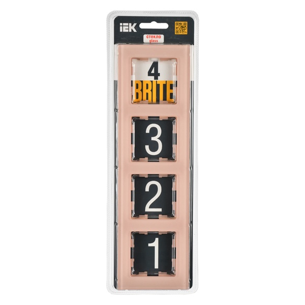 Четырехпостовое, декоративное обрамление из стекла, для электроустановочных механизмов скрытого монтажа IEK BRITE, персиковый матовый цвет BR-M42-G-31-K96
