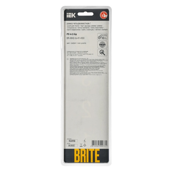 Четырехпостовое, декоративное обрамление из стекла, для электроустановочных механизмов скрытого монтажа IEK BRITE, серый матовый цвет BR-M42-G-41-K53