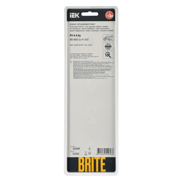 Рамка на 4 поста ИЭК BRITE стекло дымчатый RE (РУ-4-2-Бр) BR-M42-G-41-K97