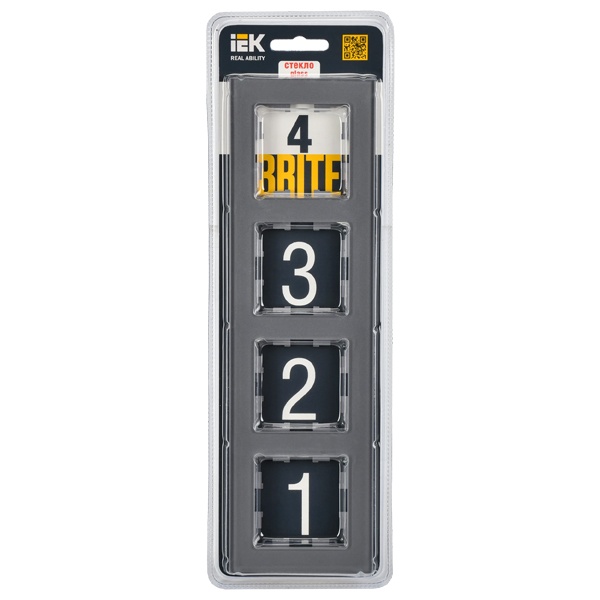 Четырехпостовое, декоративное обрамление из стекла, для электроустановочных механизмов скрытого монтажа IEK BRITE, серого цвета BR-M42-G-K03