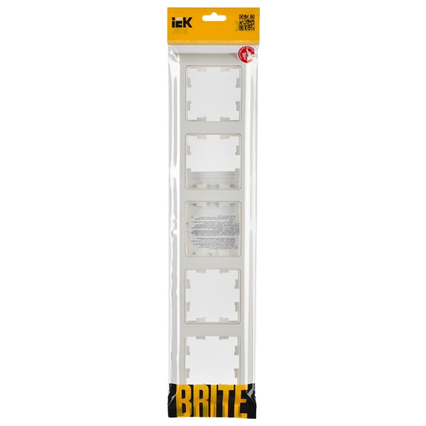 Пятипостовое, декоративное обрамление для электроустановочных механизмов скрытого монтажа IEK BRITE, белый цвет BR-M52-12-K01