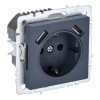 Механизм двухполюсной электрической розетки с накладкой графитового цвета для скрытого монтажа, IEK BRITE. BR-R10-10-K53