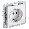 Двухместная электрическая розетка немецкого стандарта белого цвета с защитными шторками и крышкой, скрытого монтажа в одну монтажную коробку, IEK BRITE. BR-R26-16-44-K01-F