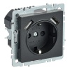 Двухместная электрическая розетка немецкого стандарта черного цвета с защитными шторками и крышкой, скрытого монтажа в одну монтажную коробку, IEK BRITE. BR-R26-16-44-K02-F