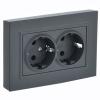 Двухместная электрическая розетка немецкого стандарта графитового цвета с защитными шторками и крышкой, скрытого монтажа в одну монтажную коробку, IEK BRITE. BR-R26-16-44-K53-F