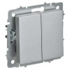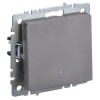 Механизм одноклавишного проходного выключателя с подсветкой, для скрытого монтажа IEK BRITE с клавишей алюминиевого цвета. BR-V12-1-10-K47