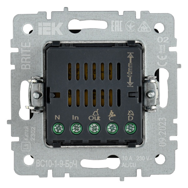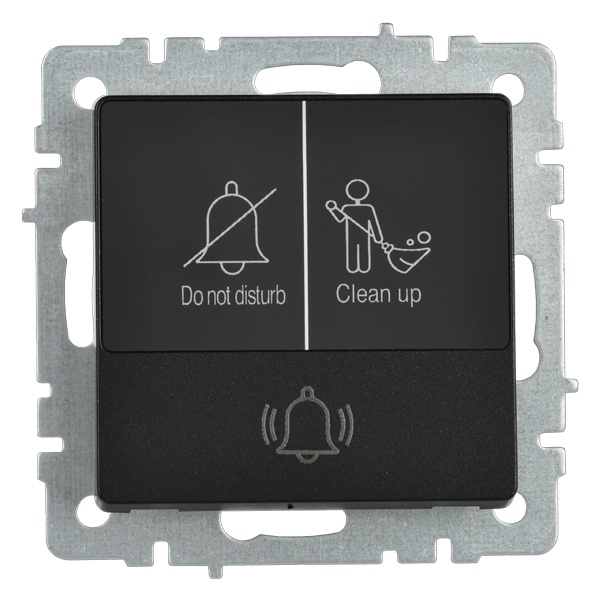 Механизм одноклавишного кнопочного выключателя скрытого монтажа IEK BRITE с LED пиктограммами для гостиницы, черного цвета BR-V14-2-10-K02