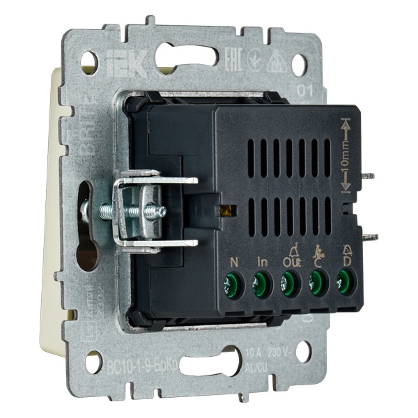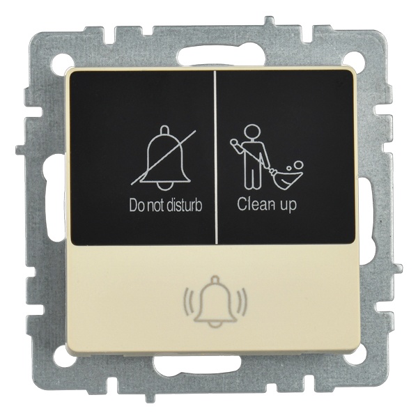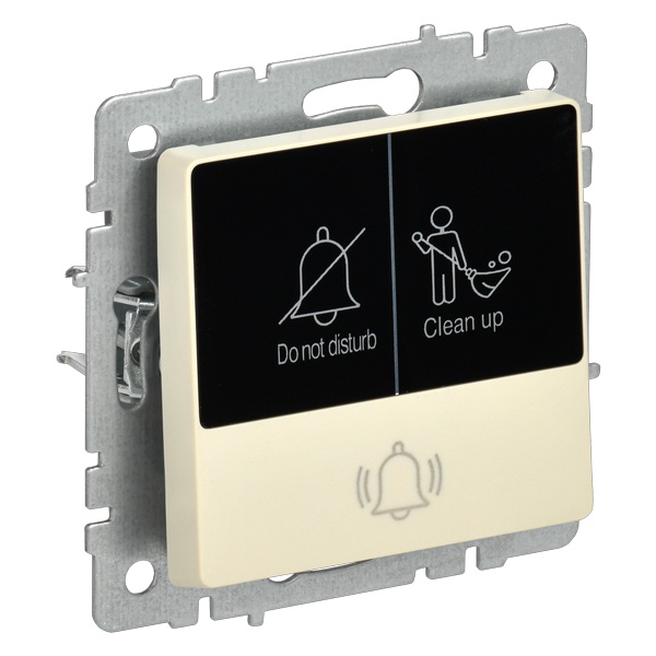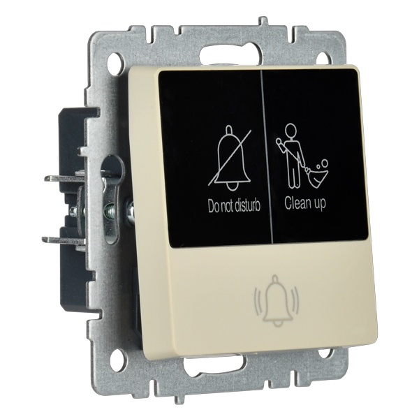 Механизм одноклавишного кнопочного выключателя скрытого монтажа IEK BRITE с LED пиктограммами для гостиницы, бежевого цвета BR-V14-2-10-K10