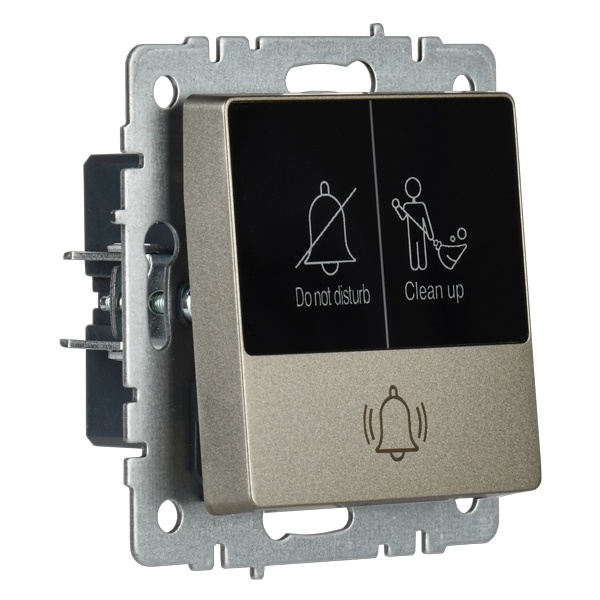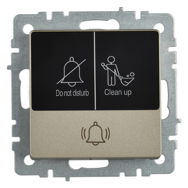 Механизм одноклавишного кнопочного выключателя скрытого монтажа IEK BRITE с LED пиктограммами для гостиницы, цвета шампань BR-V14-2-10-K37
