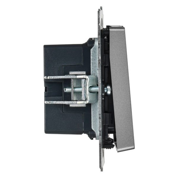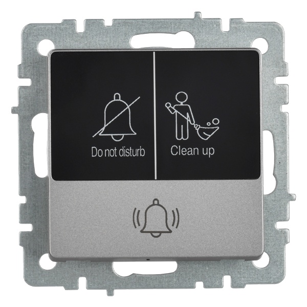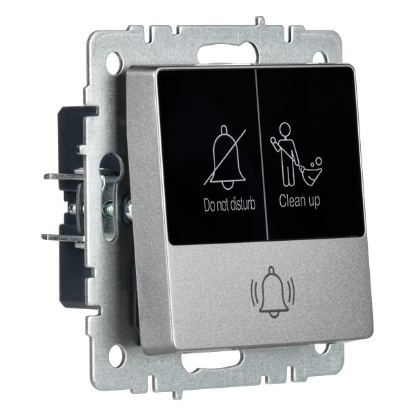 Механизм одноклавишного кнопочного выключателя скрытого монтажа IEK BRITE с LED пиктограммами для гостиницы, стального цвета BR-V14-2-10-K46