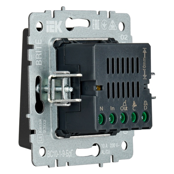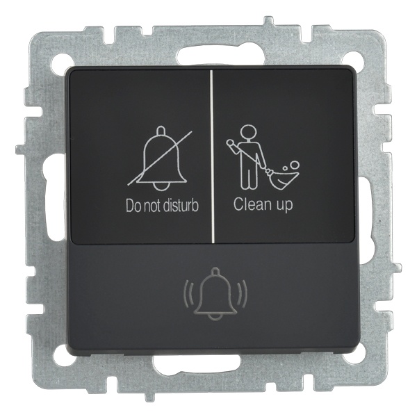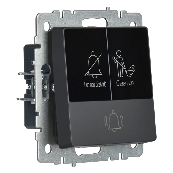 Механизм одноклавишного кнопочного выключателя скрытого монтажа IEK BRITE с LED пиктограммами для гостиницы, цвет графит BR-V14-2-10-K53