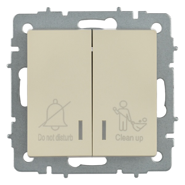 Механизм двухклавишного выключателя с подсветкой скрытого монтажа IEK BRITE для гостиницы, бежевого цвета BR-V20-2-10-K10