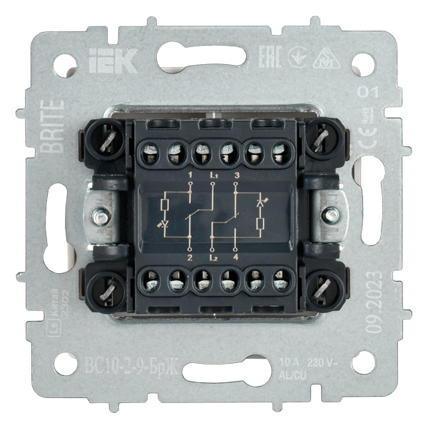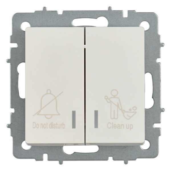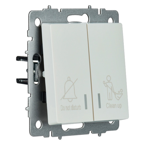 Механизм двухклавишного выключателя с подсветкой скрытого монтажа IEK BRITE для гостиницы, перламутрового цвета BR-V20-2-10-K36