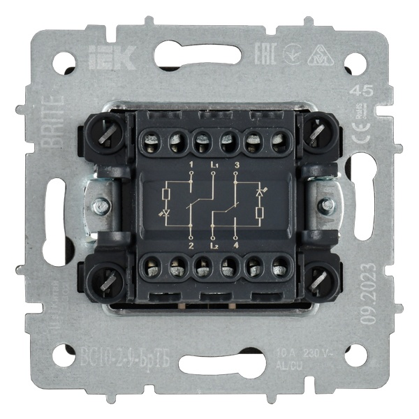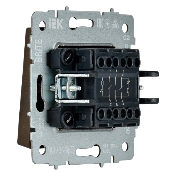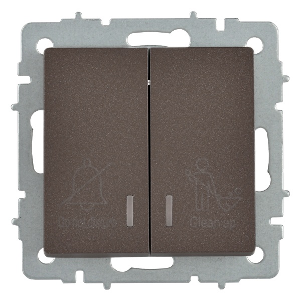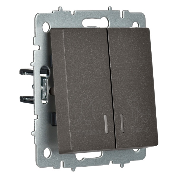 Механизм двухклавишного выключателя с подсветкой скрытого монтажа IEK BRITE для гостиницы, бронзового цвета BR-V20-2-10-K45