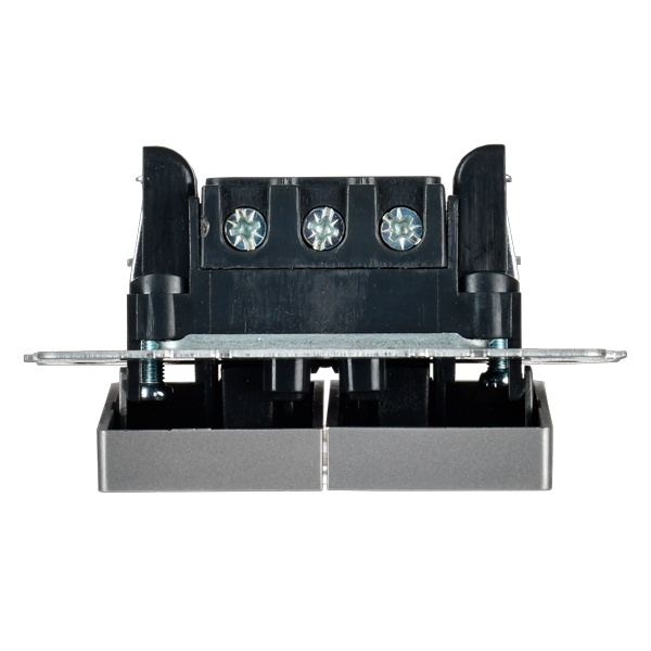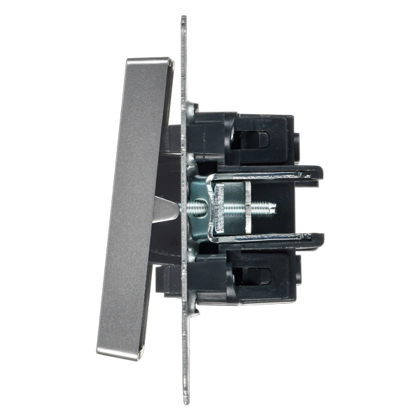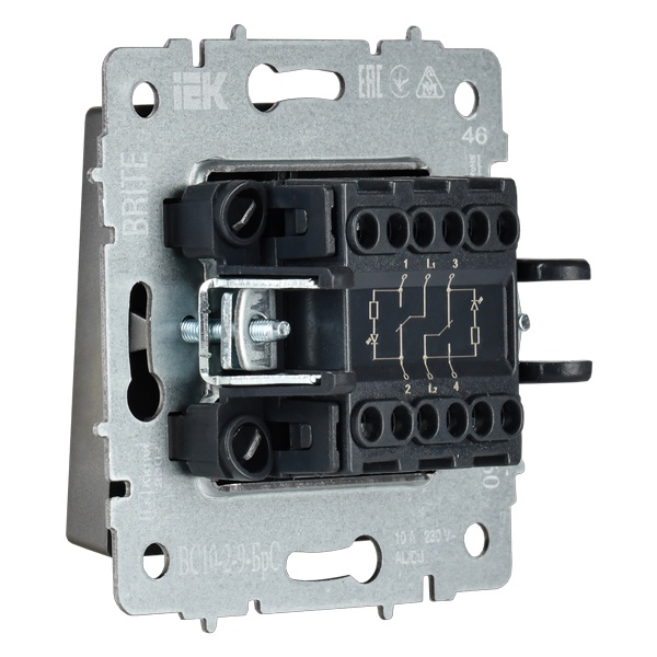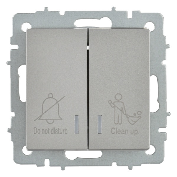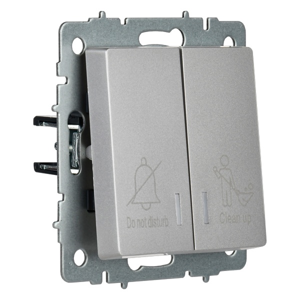 Механизм двухклавишного выключателя с подсветкой скрытого монтажа IEK BRITE для гостиницы, стального цвета BR-V20-2-10-K46