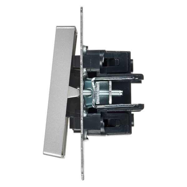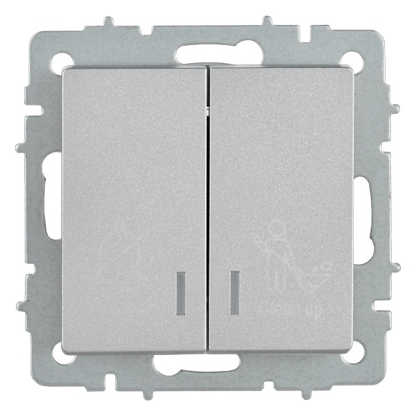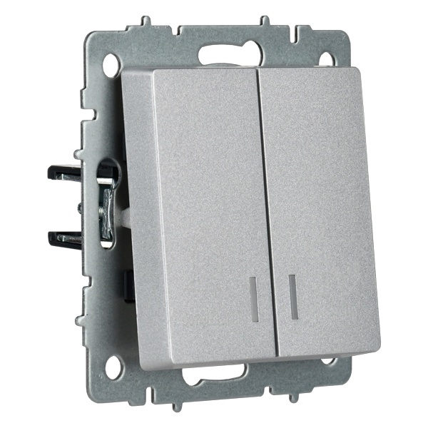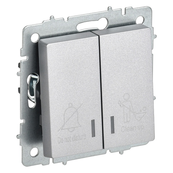 Механизм двухклавишного выключателя с подсветкой скрытого монтажа IEK BRITE для гостиницы, цвета алюминий BR-V20-2-10-K47