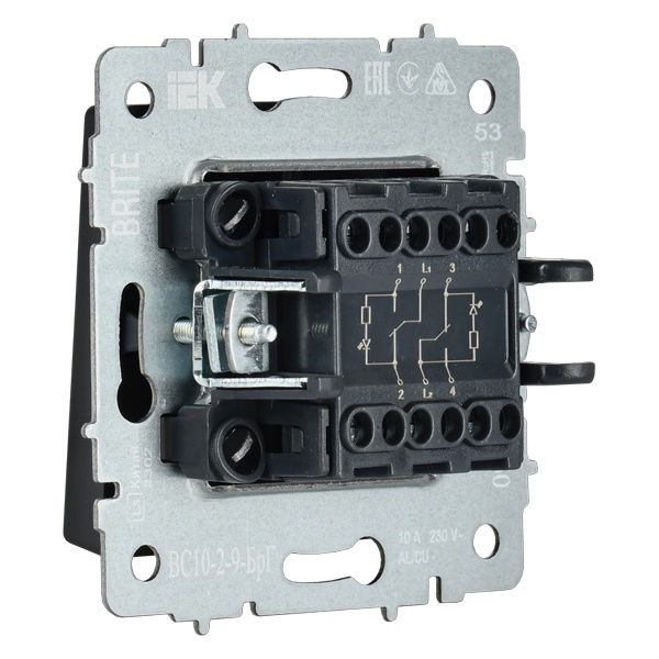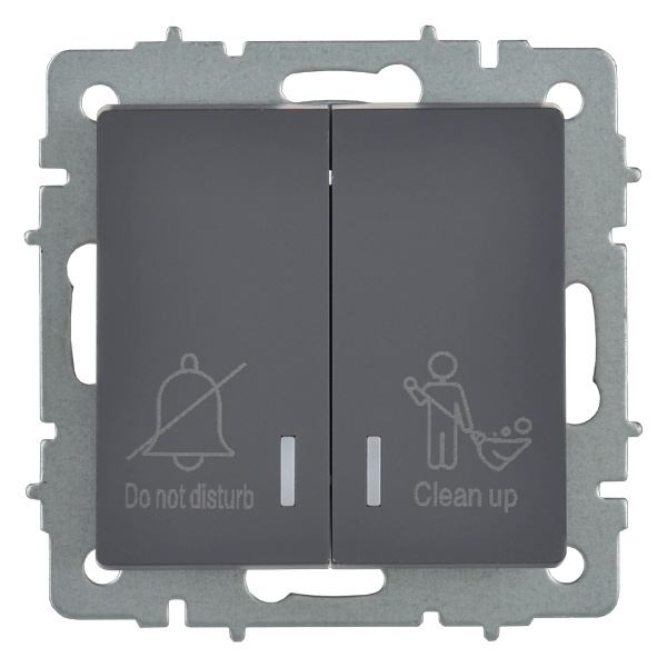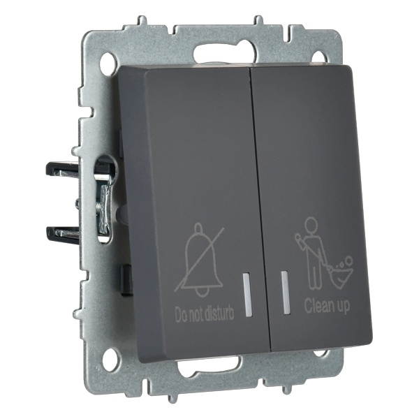 Механизм двухклавишного выключателя с подсветкой скрытого монтажа IEK BRITE для гостиницы, цвета графит BR-V20-2-10-K53