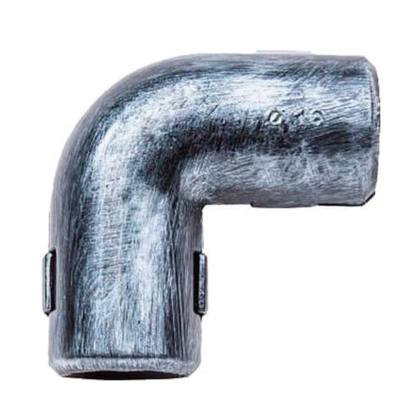 Прокладка труб для электропроводки выполняется не всегда по прямой линии. Довольно часто возникает необходимость изменить их направление. На этот случай предусмотрены такие фитинги, как соединительные углы. Данная модель торговой марки Bironi в цвете серебряный век представляет собой один из вариантов соединений труб между собой под углом 90 градусов. Само изделие сделано из ПВХ с декоративным напылением в античном стиле. Такой дизайнерский ход придуман с целью оформления интерьеров в ретро стиле. Это очень модная тенденция из прошлого, которая гармонично смотрится в интерьерах в стиле модерн, винтаж, эко и лофт. Открытая проводка должна выглядеть эстетично и быть безопасной. Угол подходит для труб с диаметром 16 мм. Он имеет гладкое исполнение. Крепление труб производится просто, путем их вставки в отверстия фитинга. Получается единая красивая конструкция, которая стильно дополняет помещение.