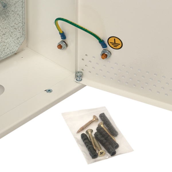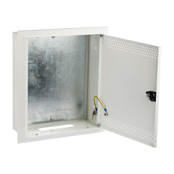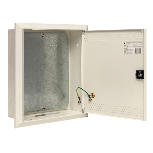 Организация кабельного ввода производится сверху и снизу щита сквозь имеющиеся отверстия. Помимо установки слаботочных систем прочный корпус можно использовать для сборки силовых щитов с возможностью монтажа модульных устройств на DIN-рейке. В комплект поставки входит монтажный набор, поводок заземления, знаки электробезопасности и замок IP31. Сферой применения оболочки выступает жилой сектор и офисно-административные объекты.