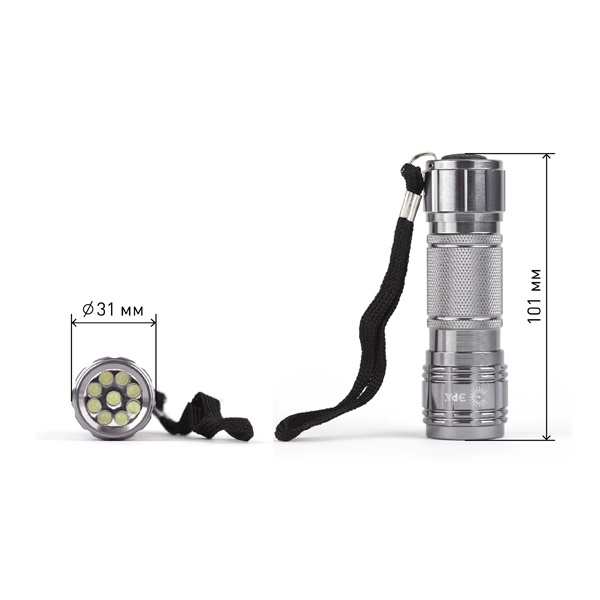 Фонарь предназначен для повседневного использования, станет отличным помощником в любой ситуации. Фонарь не больших размеров, но при этом светит очень ярко. В него встроено 9 светодиодов, мощностью 0,6 Вт. Дальность луча составляет 60 метров, фонарь светит ярким белым светом. Корпус из анодированного алюминия очень прочный, а специальные противоскользящие насечки делают его очень удобным в использовании. Фонарь по-настоящему энергоэффективен, он способен работать без перерыва 30 часов. Для комфортного использования фонарь сопровождается ремешком, чтобы его было удобно подвесить или закрепить на запястье. Прочный, яркий, компактный — отличный выбор для использования, как в городе, так и на природе. Количество часов работы позволит не отвлекаться и не думать каждый час о батарейках. Фонарик не занимает много места и его легко взять с собой. Универсальный фонарь SD9 простой, но надёжный инструмент для повседневного использования. В нём продумана каждая мелочь, от эргономичной ручки до качественных ярких светодиодов.