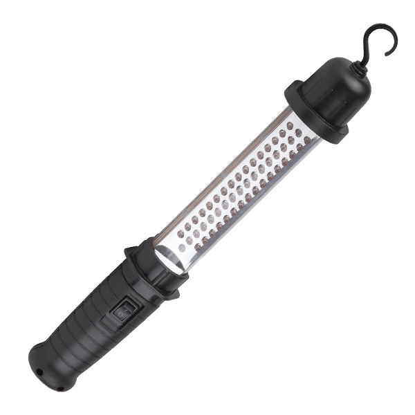 Автомобильный светодиодный фонарь на аккумуляторах. Незаменимый помощник в автомобильных поездках, в путешествиях или в гараже. Прорезиненная ручка обеспечивает удобный захват, фонарь не будет проскальзывать в руке. При этом, ударопрочный пластик защитит фонарь от механических повреждений. Специальный крюк позволит подвесить фонарь и освободить руки. Фонарь заряжается как от сети автомобиля, так и от обычной сети. Работы одного заряда хватает на три часа. Узкая форма фонаря позволяет осветить труднодоступные участки, например, в салоне автомобиля. 48 ярких диодов светят на 10 метров, что вполне достаточно для аварийного ремонта на трассе или при кемпинговом освещении. Несомненно, для любого фонаря важно качество источника света. Именно от надёжности, яркости и долговечности светодиодов зависит удобство и комфорт при использовании фонаря. В фонаре используются только качественные светодиоды, фонарь не будет нагреваться, а светит ровно и ярко. При этом стоит отметить длительный срок службы LED и безопасность использования. По своей эргономике фонарь отлично приспособлен для использования в различных условиях, это отличный инструмент для работы с автотранспортными средствами.
