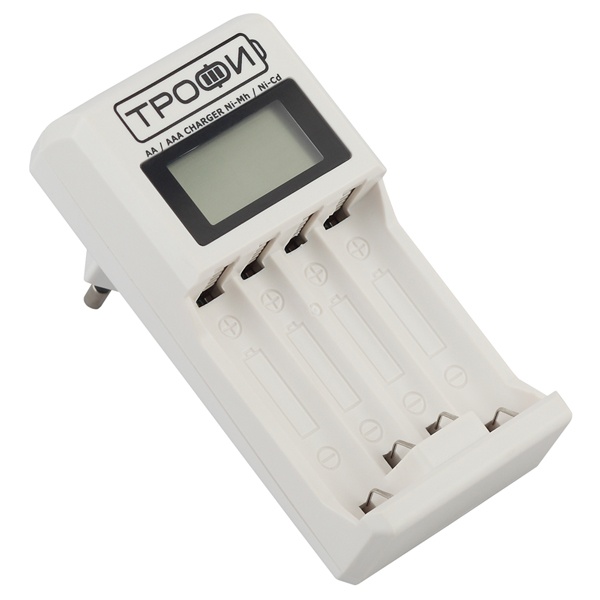 Скоростное зарядное устройство для 1 или 2 аккумуляторов типоразмера АА и ААА. Ток заряда 500мА для 1 аккумулятора АА/ААА и 250мА для двух аккумуляторов, два индивидуальных канала, время заряда одного аккумулятора АА 2500мАч - 6,5 часов, ААА 950мАч - 2,5 часа. LCD-дисплей для контроля за состоянием заряда, автоотключение, компенсирующий заряд после отключения. Пожаробезопасный пластик.
