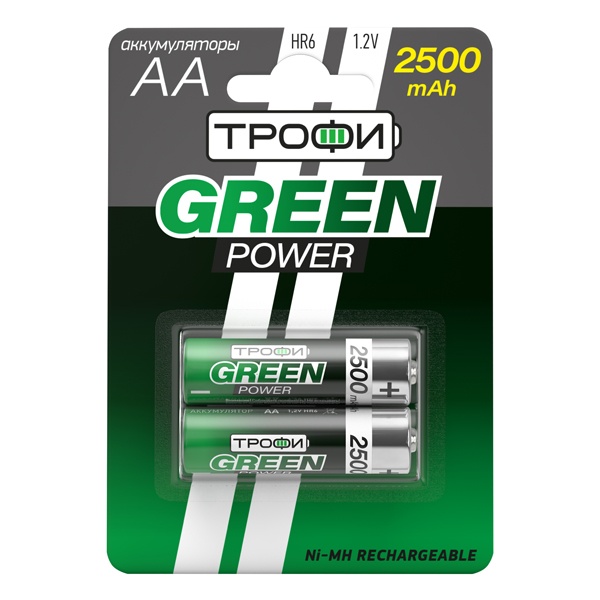 Аккумуляторные батарейки NiMH (Ni-MH) Трофи (2 шт) размера ААА, ёмкостью 2500 мАч, (2 шт) в блистере C0032101