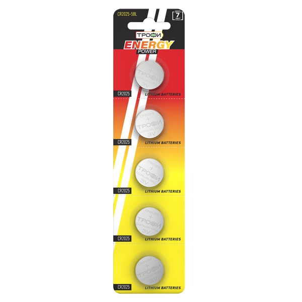 Специальная литиевая дисковая батарейка типа таблетка Трофи CR2025 3 В (5 шт) в блистере C0032184